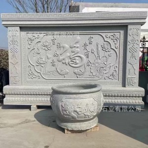 中式仿古青石雕刻福字迎门墙 古建大理石浮雕壁画 园林景观文化墙