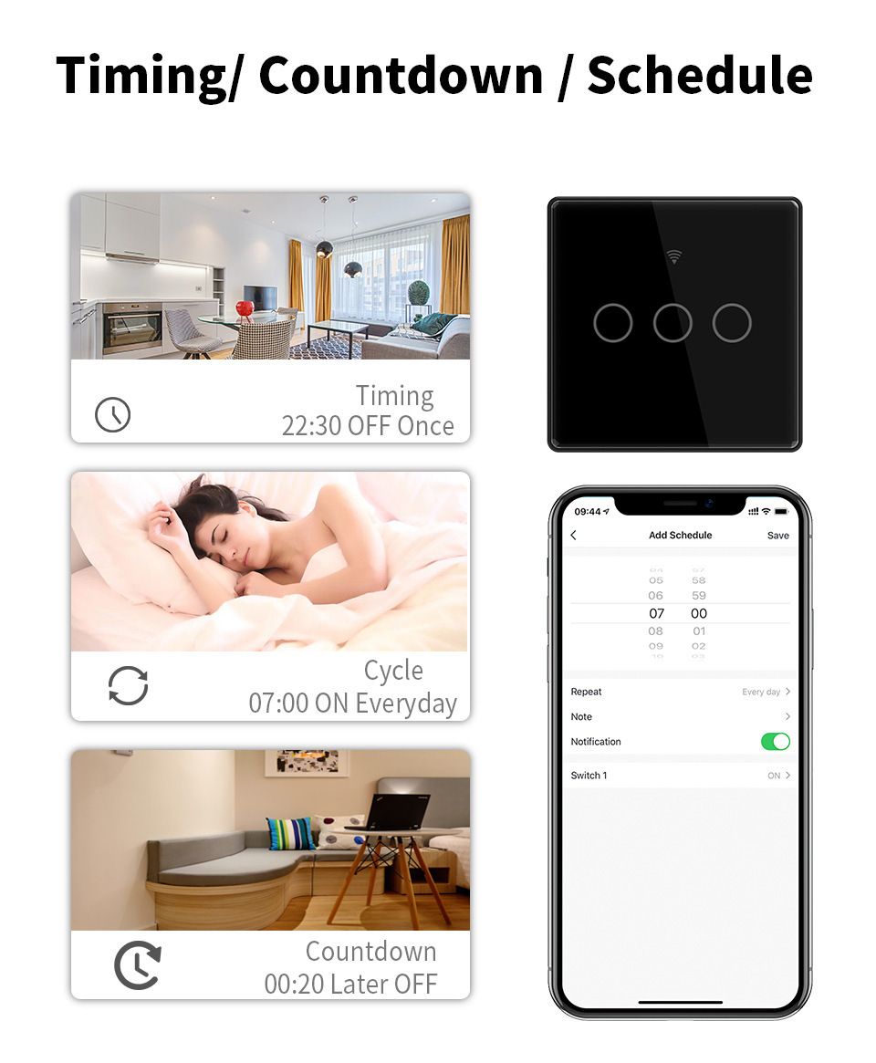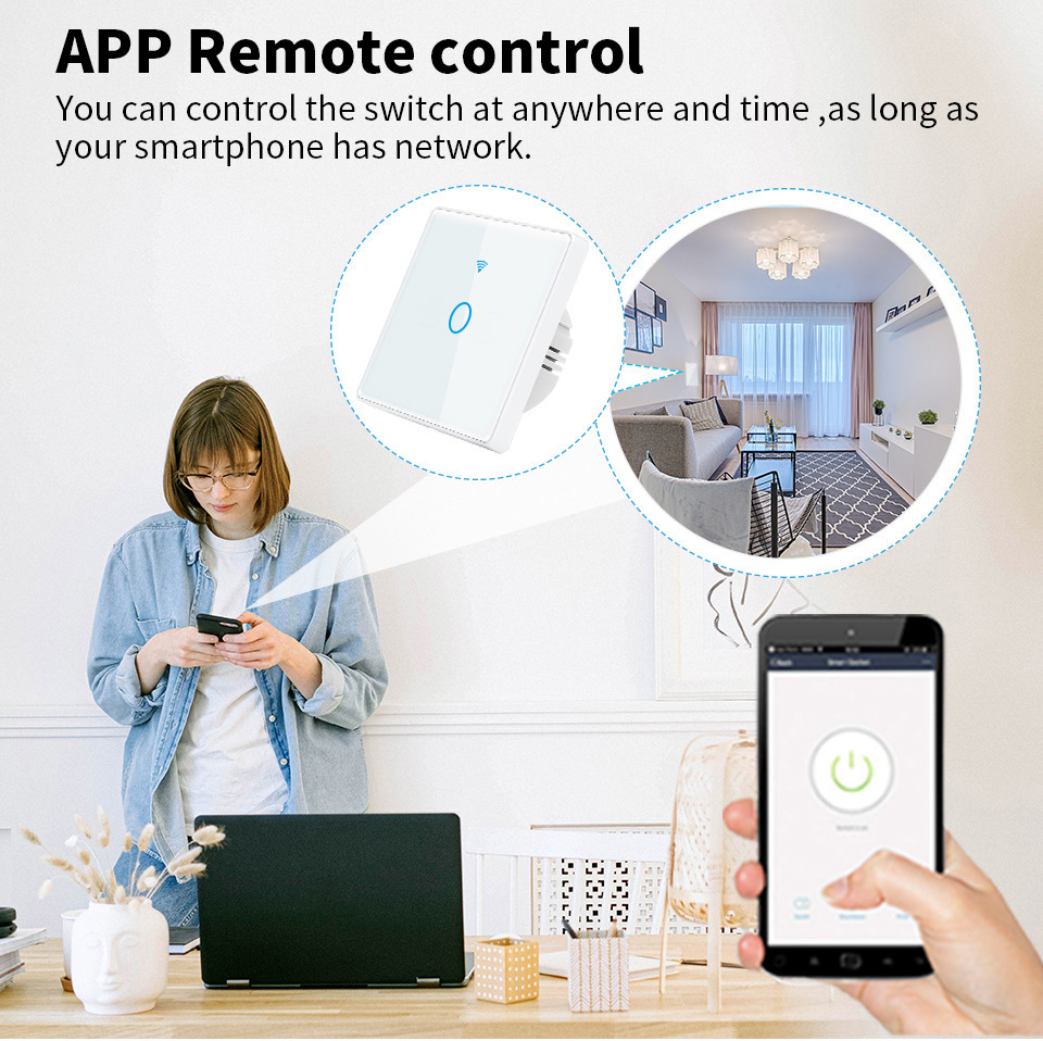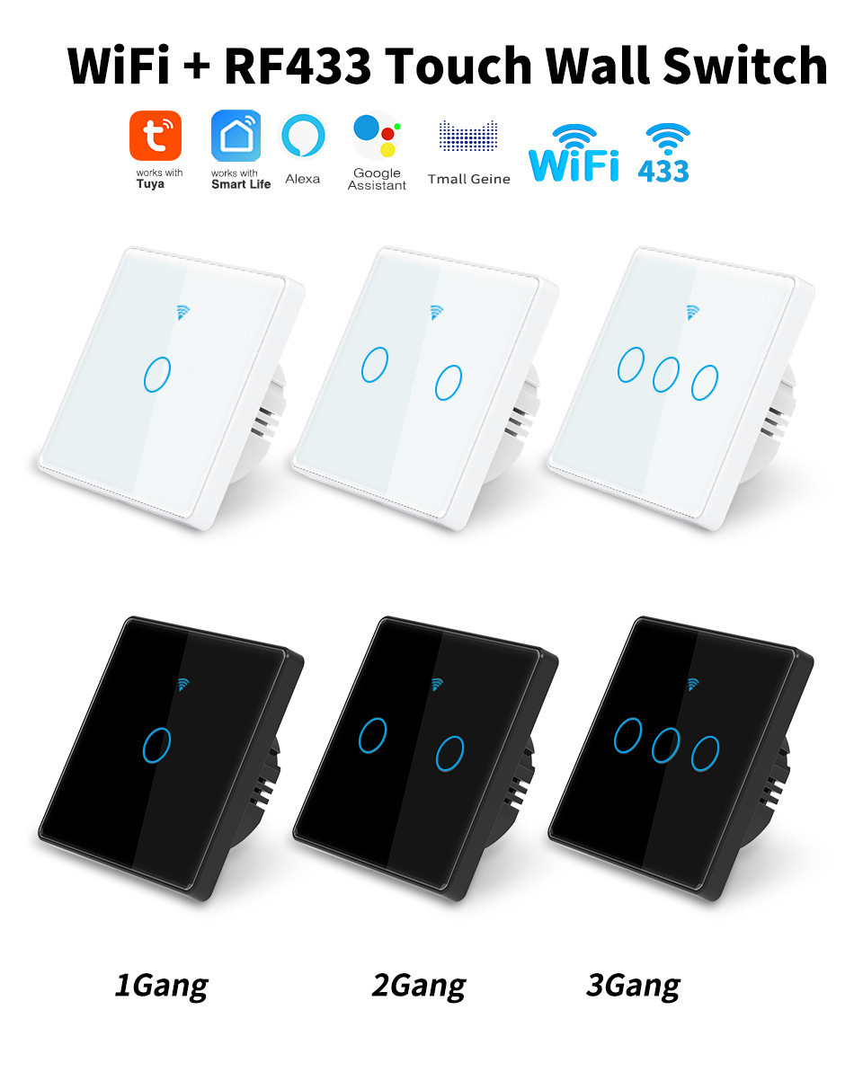 涂鸦WiFi智能开关家用智能无线控制面板alexa语音玻 璃触摸开关