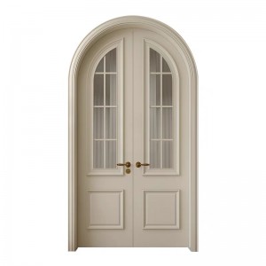 法式中古风烤漆实木轻奢圆弧拱形门隔音网红奶油白色复古双开门