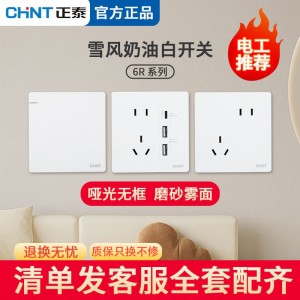 正泰开关插座86型插坐五孔带开关面板16A空调暗装家用usb 6R哑光白