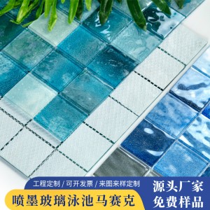 泳池马赛克玻璃瓷砖民宿别墅温泉地中海蓝色喷墨水晶玻璃马赛克