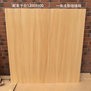 圆弧一体烧成厚11mm木纹楼梯踏步瓷砖公寓台阶防滑哑光梯级地板砖