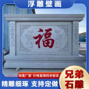 中式仿古青石雕刻福字迎门墙 古建大理石浮雕壁画 园林景观文化墙
