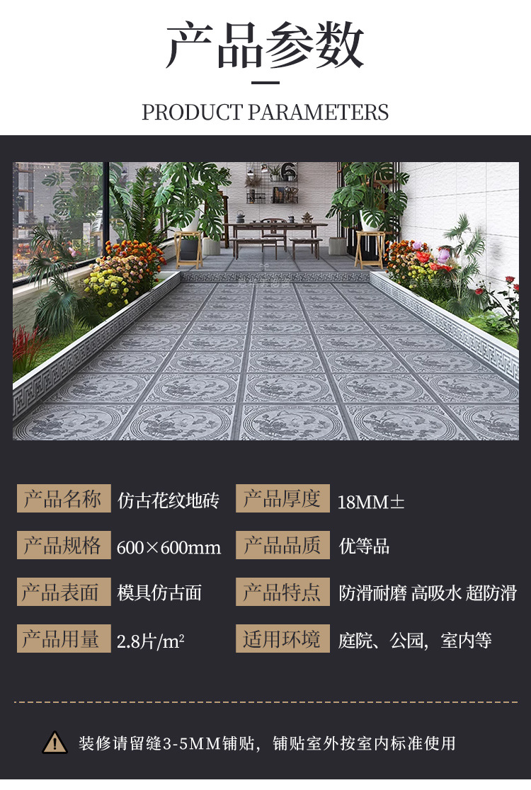 红枫四合院铺地青砖庭院仿古地砖全瓷防滑砖防耐磨室外花园拼花型