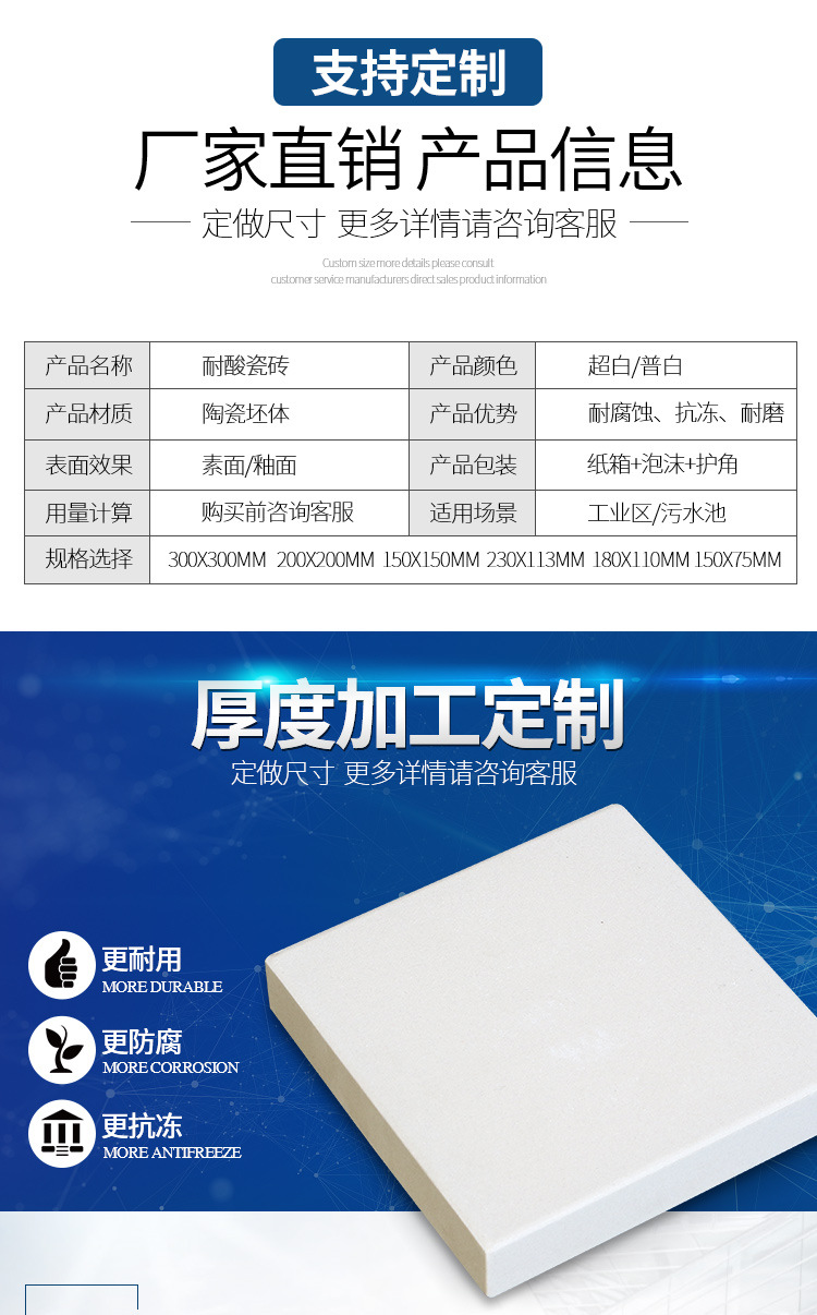 红枫工业防腐耐酸瓷砖工厂电厂加厚耐酸瓷砖素面耐压砖白 耐酸瓷砖